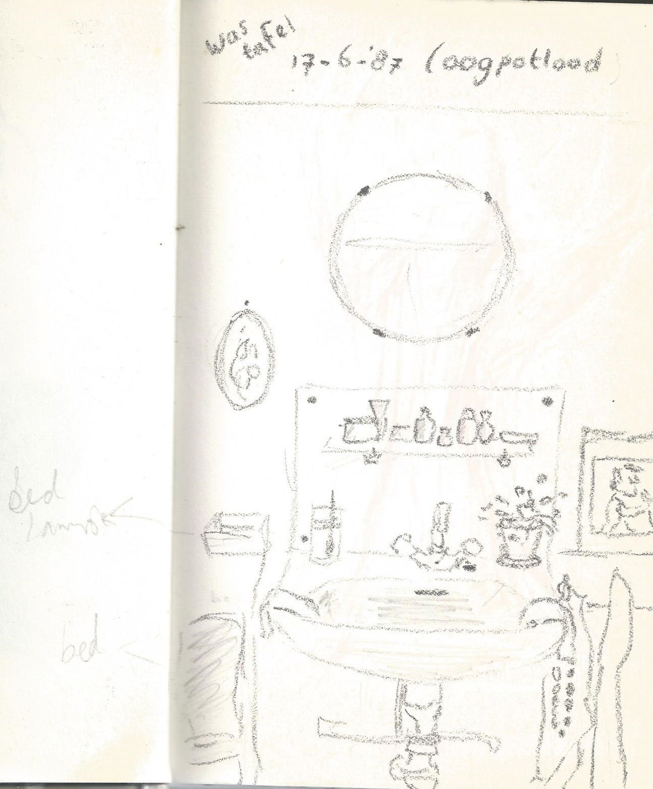 dagboekpagina. Een vakantie in ons zomerhuisje in Friesland weergegeven in kleurpotlood. Zo leuk om terug te zien wat ik toen van belang vond om te tekenen. Vol details.