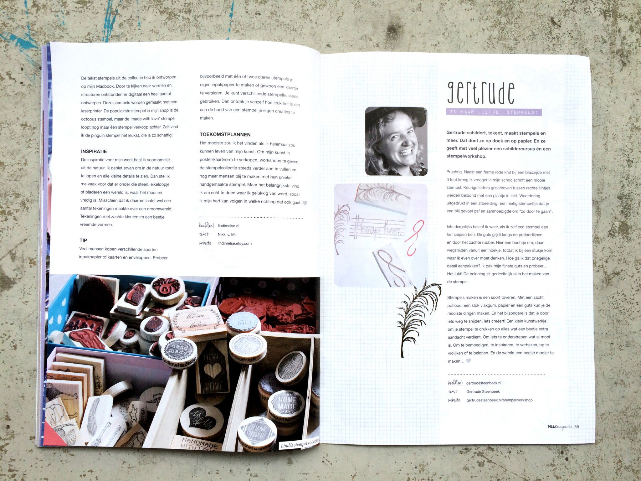 MaakMagazine is een Nederlands creatief, doe-het-zelf magazine, vol inspiratie en tutorials, met elk nummer een ander thema. In het maartnummer over stempels verscheen een column van mijn hand over mijn Stempelpassie. Klik hier voor een leesbare versie: Stempelcolumn.